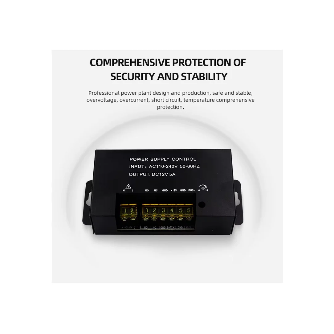 12V 5A დაშვების კონტროლის კვების ბლოკი (Access Control Power Supply) სისტემის ერთ-ერთი უმნიშვნელოვანესი ნაწილია. იგი უზრუნველყოფს ელექტრო საკეტების, ბარათების წამკითხველებისა და გასასვლელი ღილაკების სტაბილურ მუშაობას.