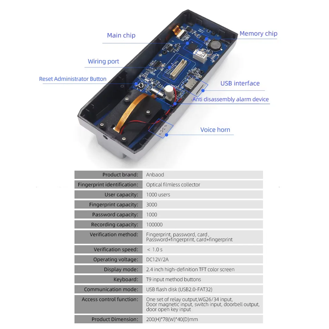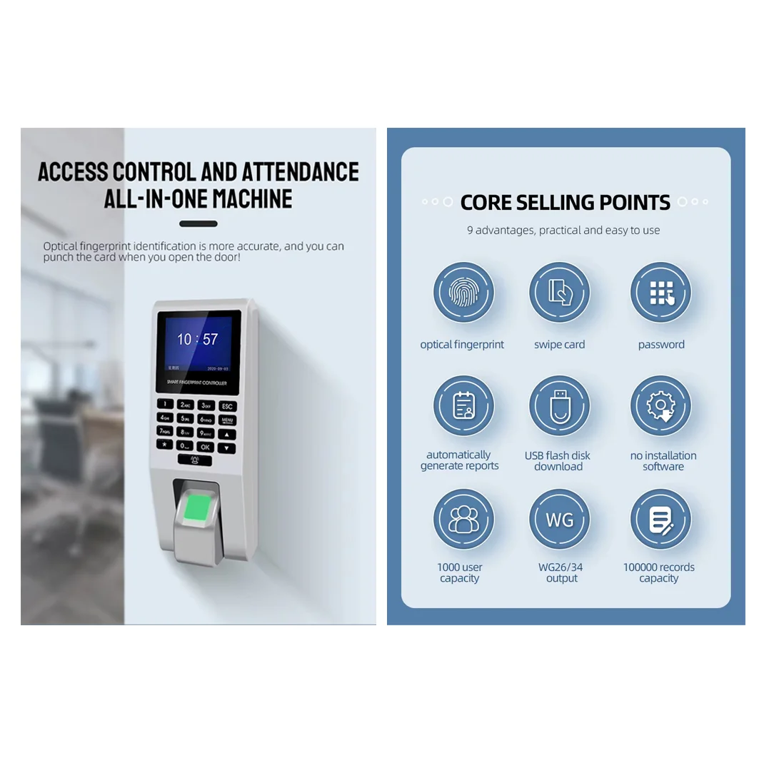 სმარტ თითის ანაბეჭდის, ბარათისა და პაროლის დაშვების კონტროლის სისტემა, რომელიც აერთიანებს დასწრების აღრიცხვას და უსაფრთხო დაშვებას ერთ მოწყობილობაში.